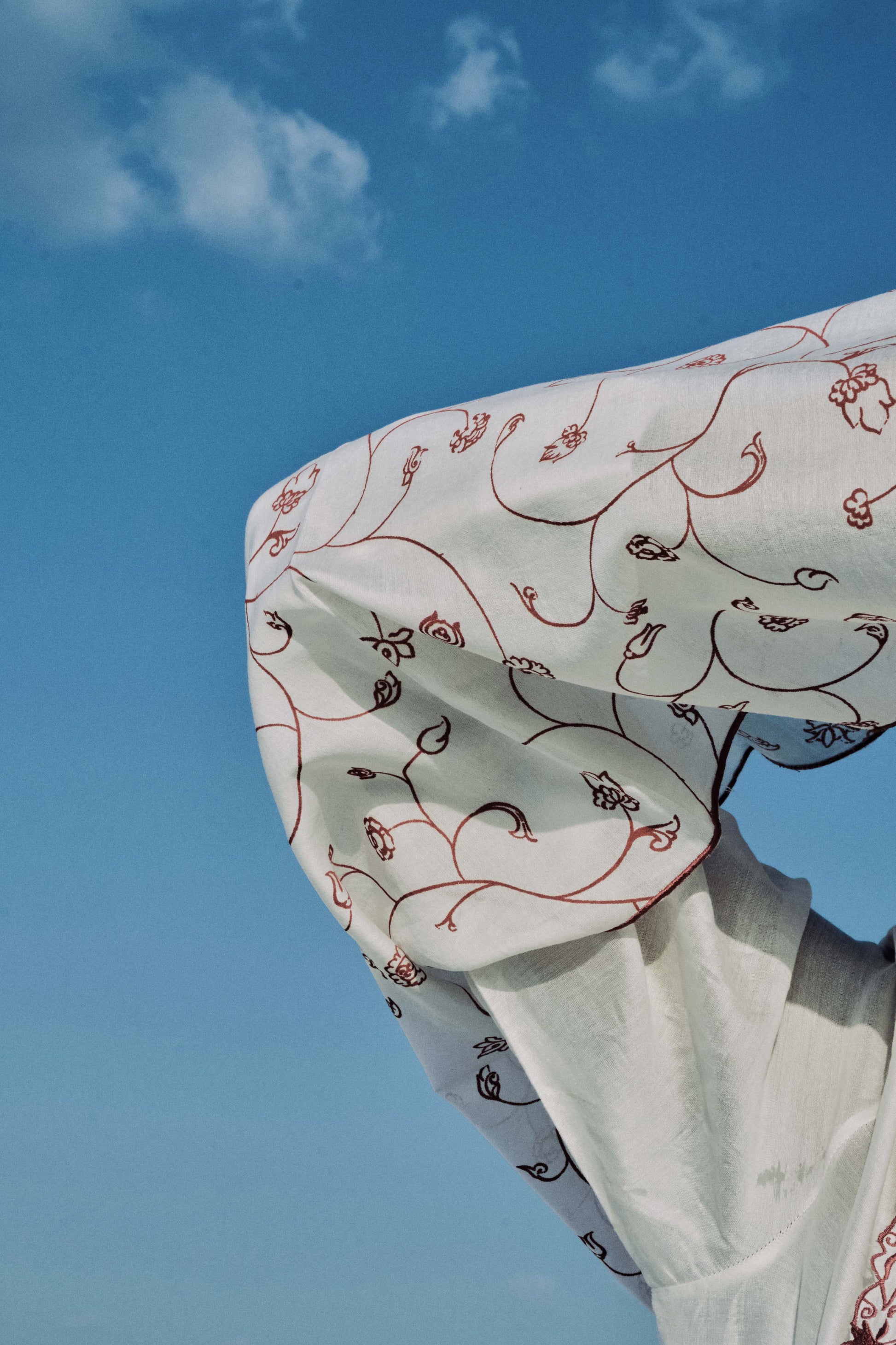 Crafted from hand-screen-printed cotton silk, the Ithaa Cotton Silk Scarf is an elegant accessory with thoughtful artisanal details. The edges are finished with hand embroidery and handmade beaded tassels, creating a delicate and textured finish. Lightweight and airy, it drapes naturally over the body, offering effortless style. Every stitch, tassel, and embroidered detail has been executed with hours of careful labour, transforming this scarf into an accessory that celebrates meticulous craftsmanship and refined elegance.
