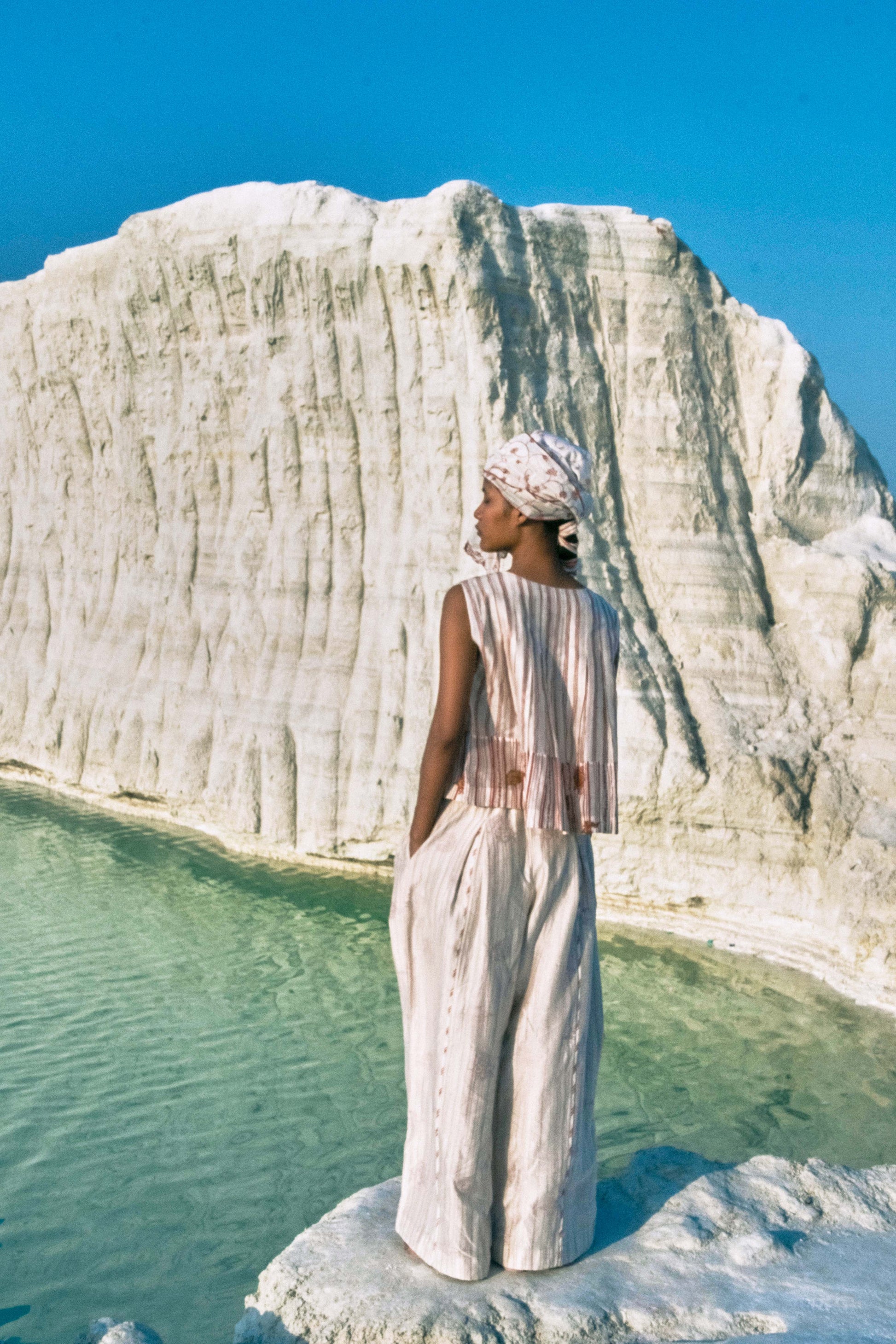 The May Box Pleat Top redefines a classic silhouette with hand-screen-printed cotton silk, sculpted box pleats, and an open neckline. A keyhole-like armhole detail and relaxed fit balance contemporary charm with subtle sophistication. Every pleat, stitch, and finishing detail reflects hours of meticulous handwork, creating a piece that is both versatile and a testament to refined craftsmanship.