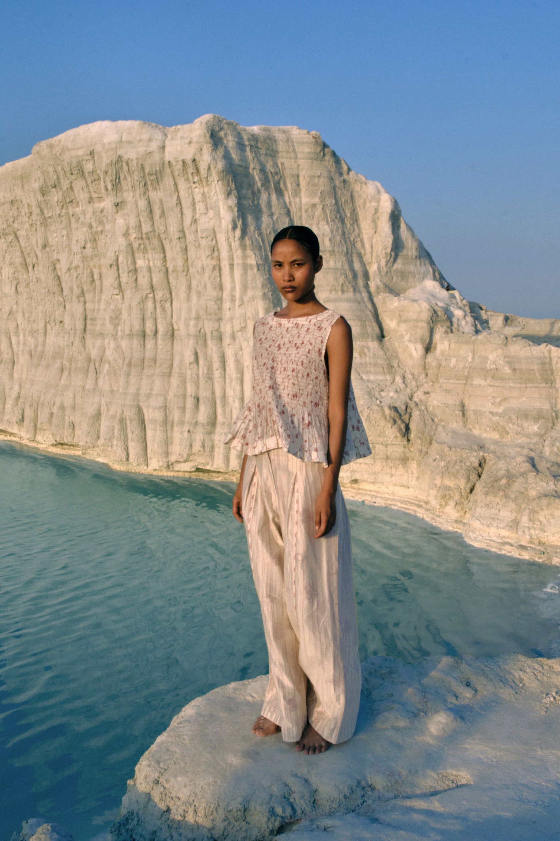 Where contemporary tailoring meets mindful craftsmanship, the Zeya Ruching Top drapes effortlessly with soft ruching and delicate hand-screened floral motifs tracing the silhouette. Relaxed yet polished, it transitions seamlessly from serene daytime moments to quiet evening affairs. Each stitch reflects hours of meticulous handwork, embodying both comfort and timeless refinement.